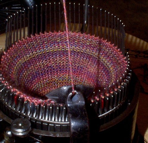 stockinette, ending with the yarn carrier in the front of the machine.