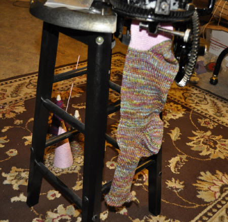 Comes with sample sock knitted on machine.